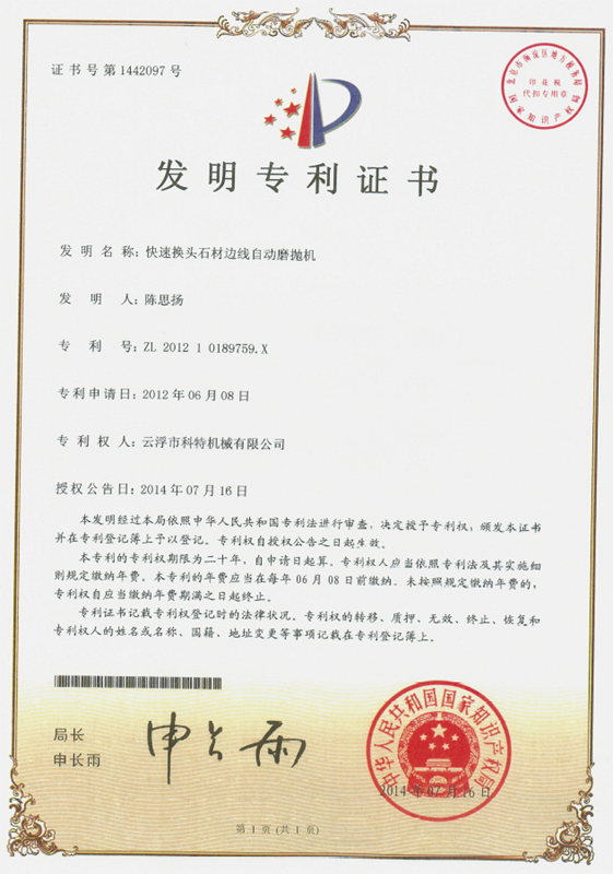 企業(yè)組建了“云浮市石材機(jī)械裝備工程技術(shù)研究開(kāi)發(fā)中心”,并與高校和科研院所密切合作,致力于光機(jī)電一體化產(chǎn)品的研發(fā)、生產(chǎn)、銷(xiāo)售和服務(wù)。主要產(chǎn)品有框架鋸、全自動(dòng)連續(xù)磨拋機(jī)、橋式自動(dòng)切割機(jī)、全自動(dòng)仿形石線機(jī)、數(shù)控金剛石繩鋸、裁切機(jī)等。產(chǎn)品具有自動(dòng)化程度高、加工精度高和生產(chǎn)效率高等特點(diǎn)。產(chǎn)品除國(guó)內(nèi)銷(xiāo)售外,還出口到歐美、東南亞、韓國(guó)、印度、中東、非洲、俄羅斯、澳大利亞等國(guó)家和地區(qū),深受用戶(hù)好評(píng)。“橋式自動(dòng)切割機(jī)”被認(rèn)定為廣東省高新技術(shù)產(chǎn)品,擁有發(fā)明專(zhuān)利1項(xiàng)、實(shí)用新型專(zhuān)利1項(xiàng)。